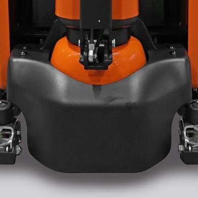 The frame of the truck is surrounded by stamped steel and a strong steel apron ensuring the protection of components. The unique fork design allows for easy entrance and exit from pallets and their full length double sided C-shape reinforcement significantly increases the strength and rigidity of the frame.