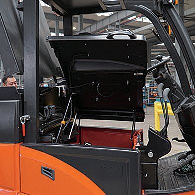 Cover Fully Opens to make the maintenance of battery, motor, hydraulic piping, electronic controller and other parts extremely convenient and efficient.