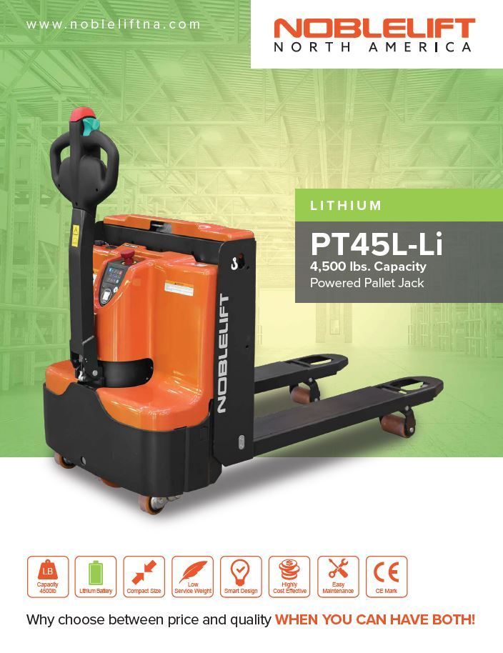 NOBLELIFT Introduces the New PT45L-Li Lithium Powered Pallet Jacks