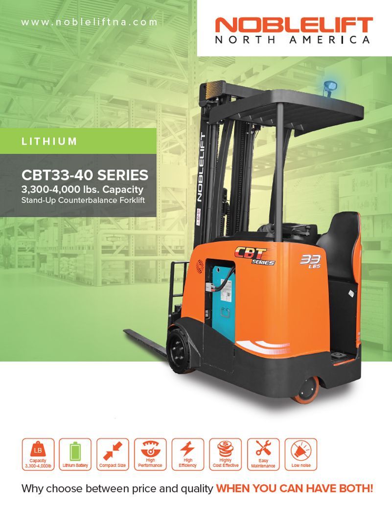 NOBLELIFT Introduces the New CBT33 Series Lithium Stand-Up Counterbalance Forklifts