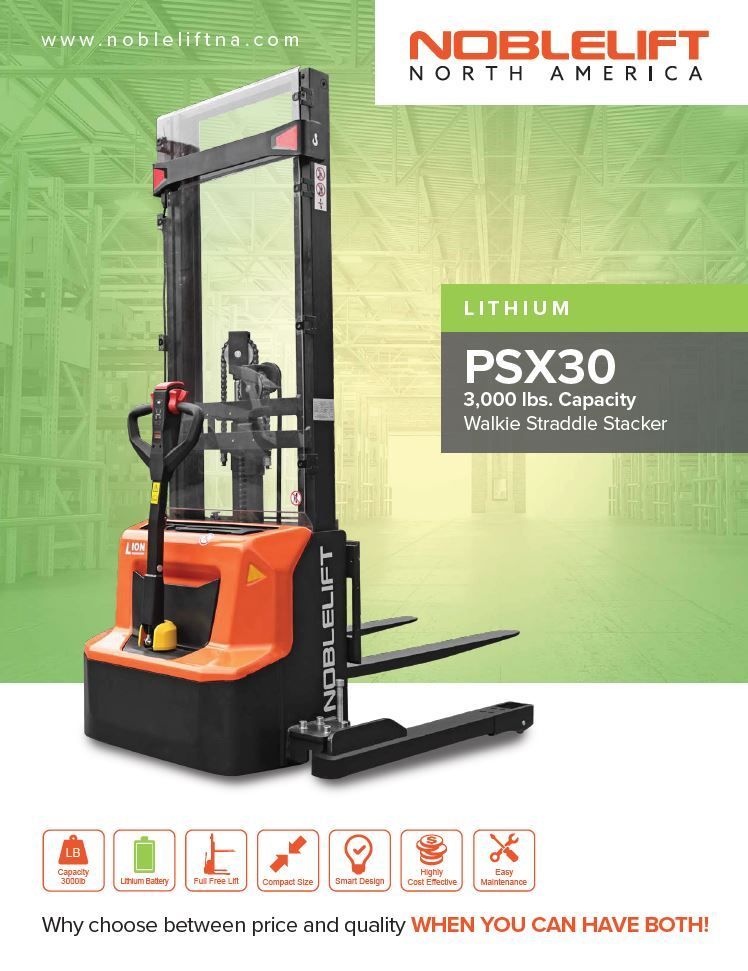 NOBLELIFT Introduces the New PSX30 SeriesLithium Walkie Straddle Stackers