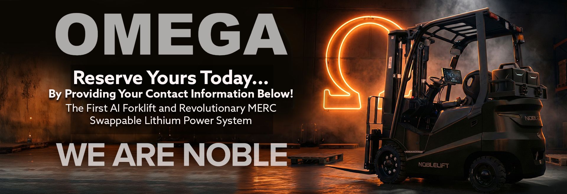 Introducing the NOBLELIFT Omega AI Forklift — a revolutionary step forward in human-machine potential for the modern supply chain. Purpose-built for today’s warehouses and distribution centers, the Omega unites native AI intelligence, real-time collaboration between people and automation, and a modular, swappable lithium power system designed to virtually eliminate downtime. The result is a smarter, safer, and dramatically more productive way to run your operation — and a platform built to easily adopt the next wave of material handling technology as it comes to market. Join the priority access list below to be among the first to receive launch updates and secure early access when Omega becomes available.