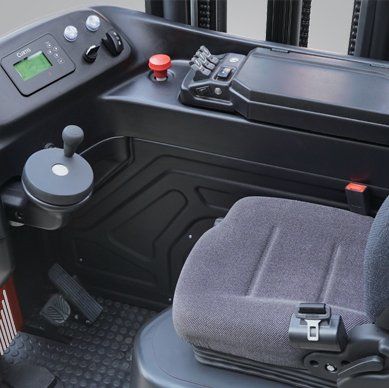 This very narrow aisle forklift is equipped with high-quality German components, maintenance free AC Drive system, EPS-Electric Power Steering system and many safety features. High efficiency – Heavy duty!