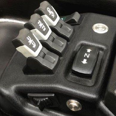 The fingertip proportional control provides smooth and proportional operation of hydraulics functions.