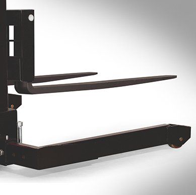 The lifting is electric powered with the controls conveniently mounted on the dash. It is manually propelled. Forks and straddle legs can adjust from side to side to accommodate different skid widths.